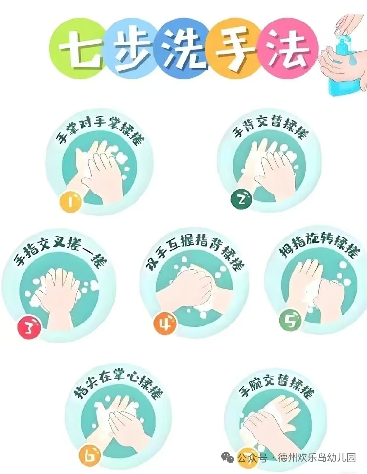 生动形象且具有教育意义的七步洗手歌,让孩子们在娱乐中掌握了七步洗手法的正确顺序及要求,大家一起来学一学吧! 小狗汪汪搓手心,乌龟爬爬搓手背; 孔雀开屏搓指缝,螃蟹洗洗小钳子; 白鸽展翅转拇指,小鸡吃米啄手心; 大象鼻子转手腕。